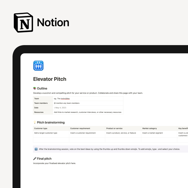 Elevator Pitch Template