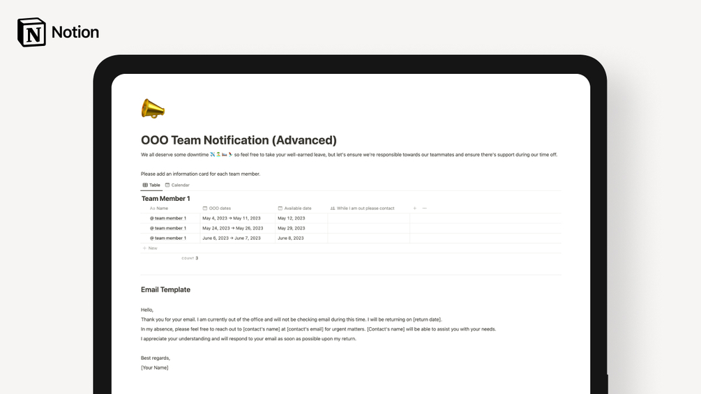 OOO Team Notification (Advanced) Template